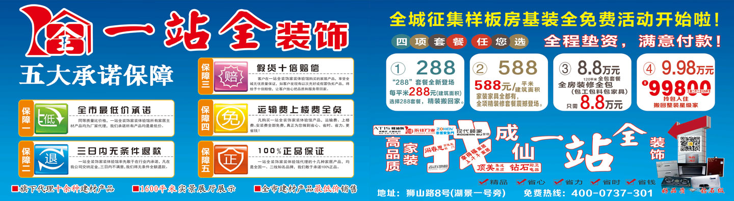 一站全裝飾總部地址:沅江市瑞豐商貿(mào)城29棟